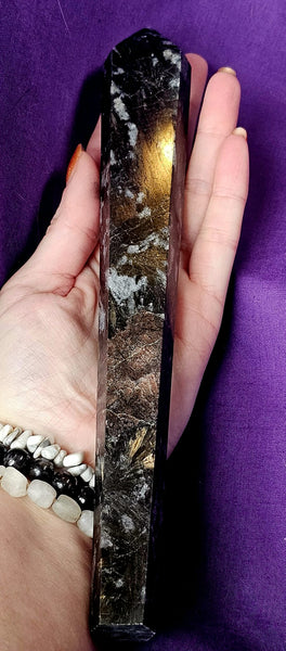 Arfvedsonite AKA Fireworks Stone and Garnet Crystal Wand 🖤🪄🔥🎆✨💙