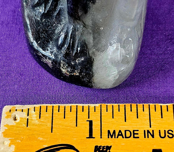 Extremely unique cut specimen with the way the pattern of the different types of crystals 🤩
