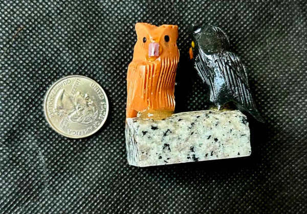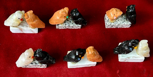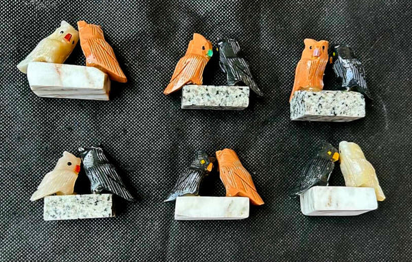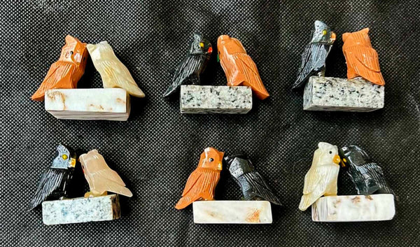 Assorted Soapstone Crystal Pair of Owls Bird on Base Carving 🦉✨🦉