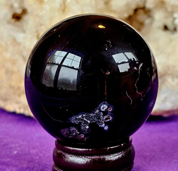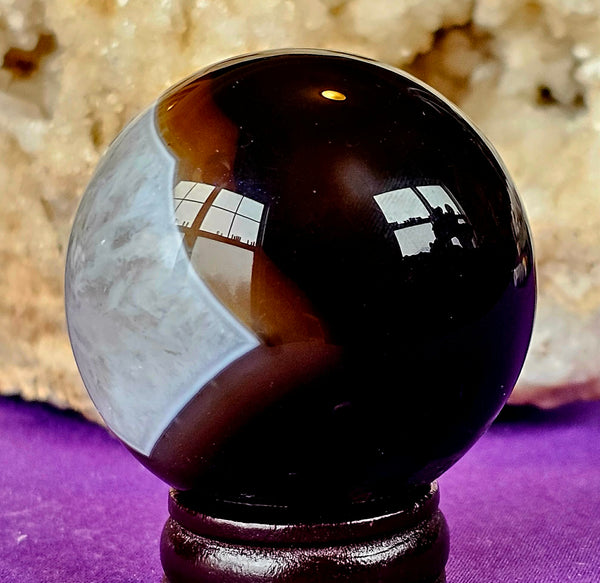 Black Agate Crystal Sphere ✨🤍🤯😍🔮🖤