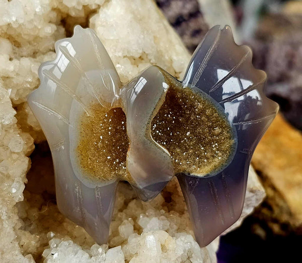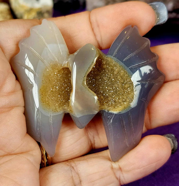 Blue Agate Crystal Bat w/Druzy ✨🦇💙✨