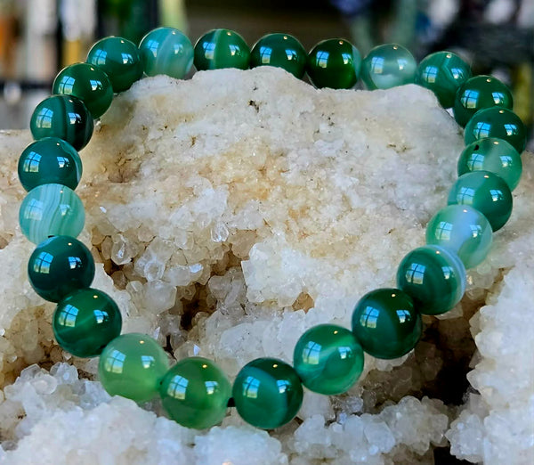 Dyed Green Agate Crystal Stretch Bracelet πŸ’šπŸπŸ“Ώβœ¨