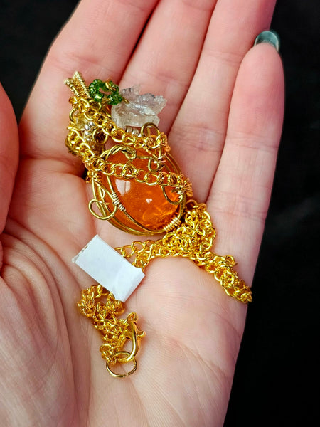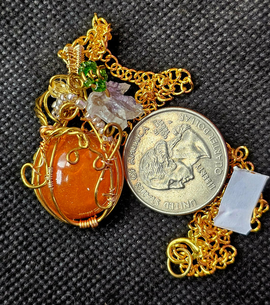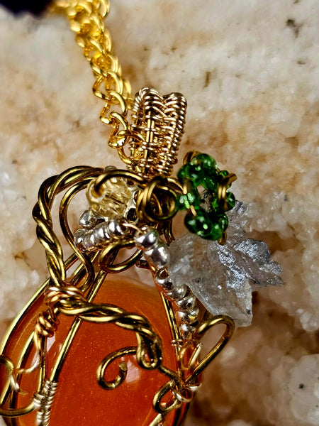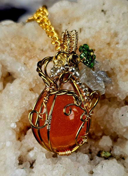 Handcrafted Wire Wrapped Sunstone Cabochon Crystal Pumpkin Necklace 📿✨🎃⚜️