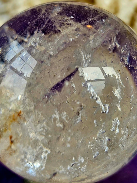 High Clarity Clear Quartz Crystal Sphere w Rainbows and Iron Inclusions 🔮💎🤩✨💥