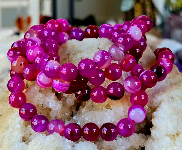 Hot Pink Dyed Agate Crystal Stretch Bracelet βœ¨πŸ“ΏπŸ©·