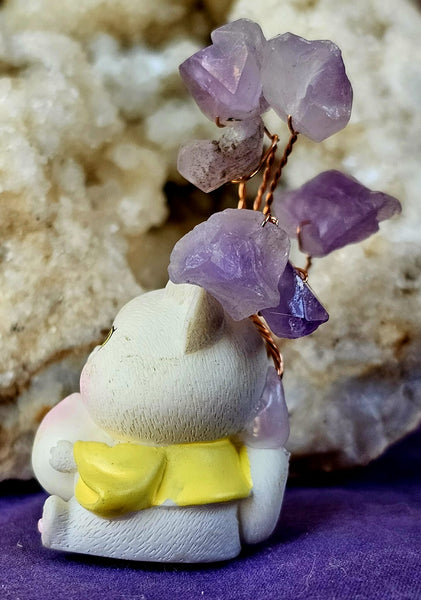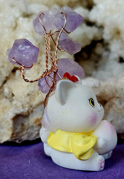 Kitty Holding Dumpling w/Wire Wrapped Amethyst Crystal Tree 🐈🧧🥟🌳💜