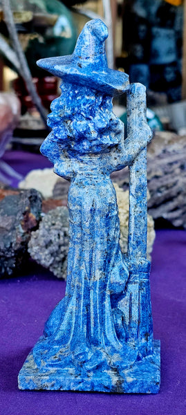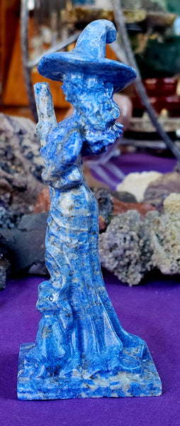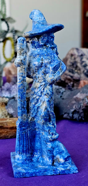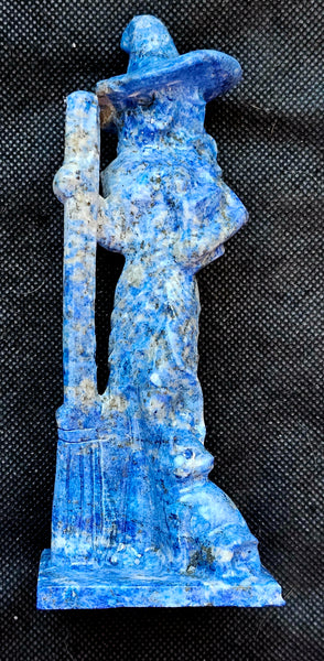 LG. Lapis Lazuli Crystal Witch w/Cat Familiar, Broom, & Spellbook ๐งโโ๏ธ๐งน๐๐