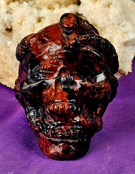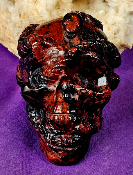 LG. Mahogany Obsidian Crystal Skull w/Snakes💀🖤🐍❤️🤯🤩