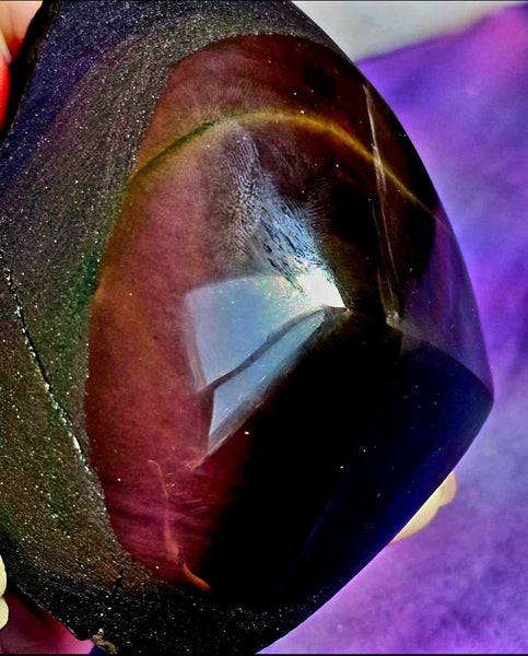 LG. Partially Matte/Raw/Polished Finished Rainbow Obsidian Heart ❤️🌈🖤😍✨