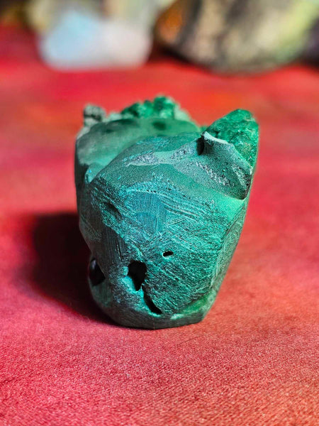 Carved crystal freeform. Partially raw/cut. Eyes are made out of black Obsidian beads. ⚠️WARNING Malachite is considered toxic if ingested. Wash hands after handling⚠️
