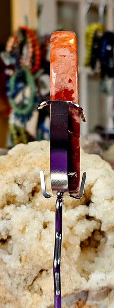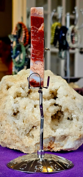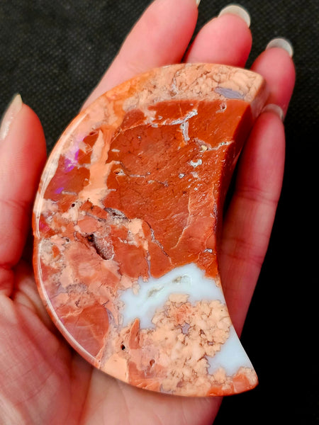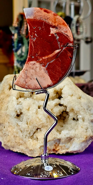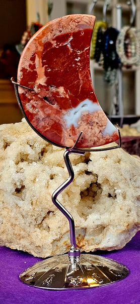 MD. Pink Sakura Agate Crystal Crescent Moon w/Silver Metal Display Stand π©·β¨πβͺοΈπ