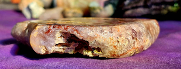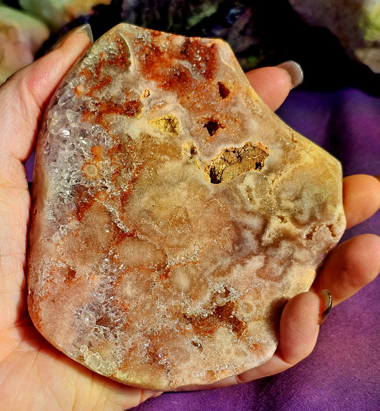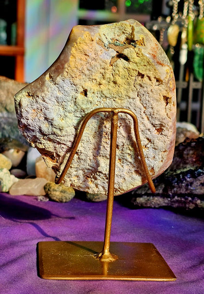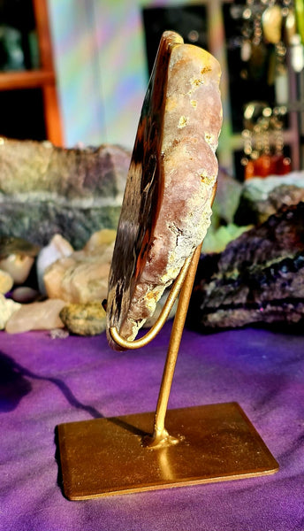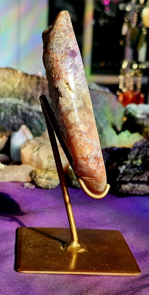 MD. Polished/Raw Pink Amethyst Crystal Slab w/Hematoid Inclusions on Custom Metal Stand ♥️🌸✨🥰🩷