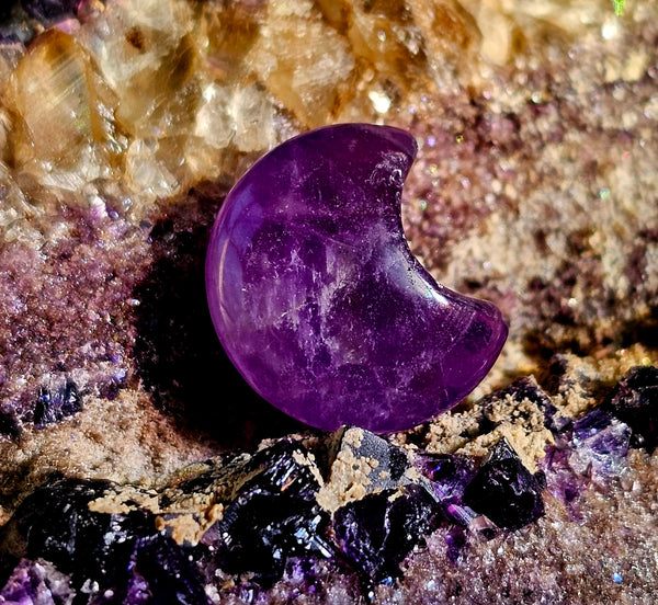 Mini Chevron Amethyst Crystal Crescent Moon Carving πππ