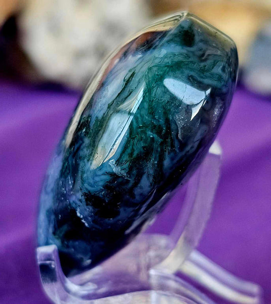 Moss Agate Crystal Puffy Heart ๐Ÿ’š๐ŸŒณ๐Ÿ’™ # 1