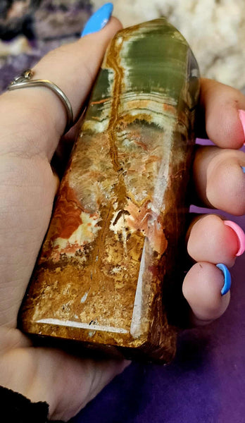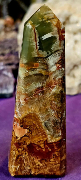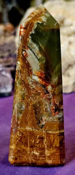 Multi Colored Banded Calcite Crystal Obelisk Tower 🍃💚🍂🤎
