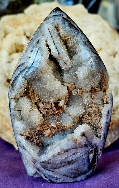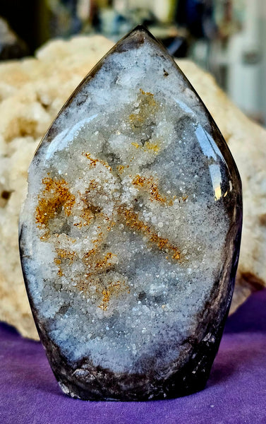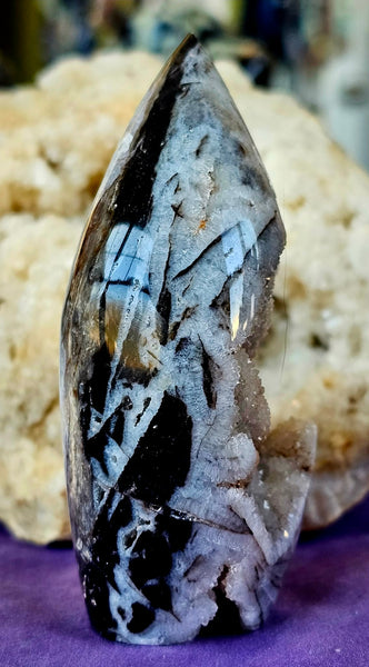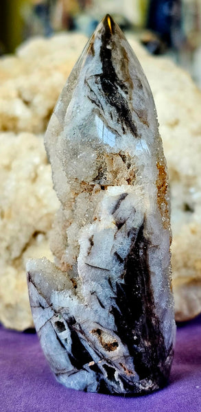 Partially Raw/Polished Black and White Sphalerite Crystal Freeform 🖤💎✨🤍