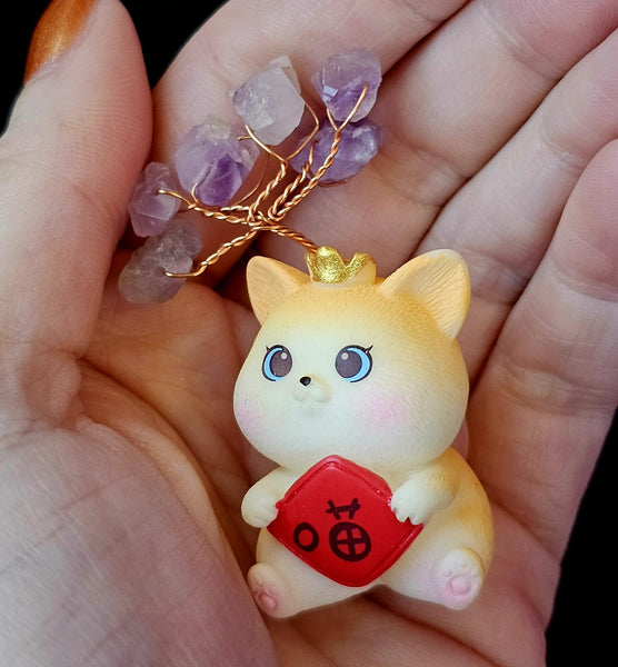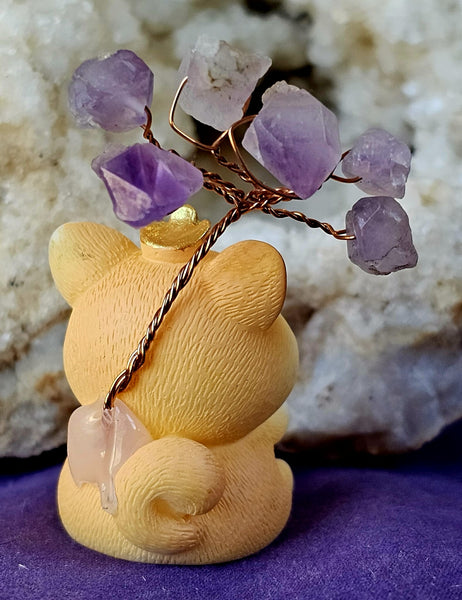 Queen Kitty Holding Heart w/Wire Wrapped Amethyst Crystal Tree 👑🐈✨❤️🌳💜
