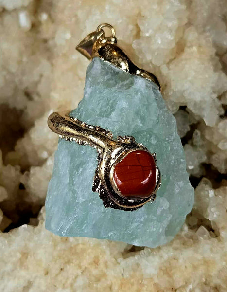 Raw Green Fluorite w/Red Jasper Gold Wrapped Necklace βœ¨β€οΈπŸ“ΏπŸ’š