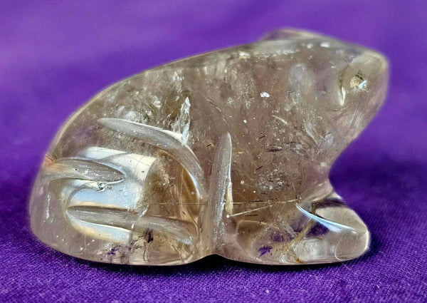 Smokey Quartz Rutilated Frog Carving w/Rainbows πβ¨πΈβ¨