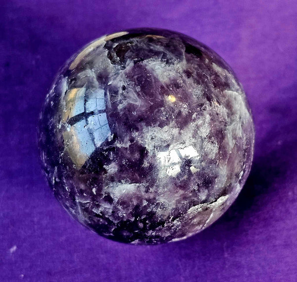 50 MM in diameter. Unicorn Stone is a combination of Lepidolite/ Purple Mica, Smokey Quartz, Pink Tourmaline and Snow Quartz. It may also contain iron staining, Blue Tourmaline, Clear Quartz and other lovely materials.Â